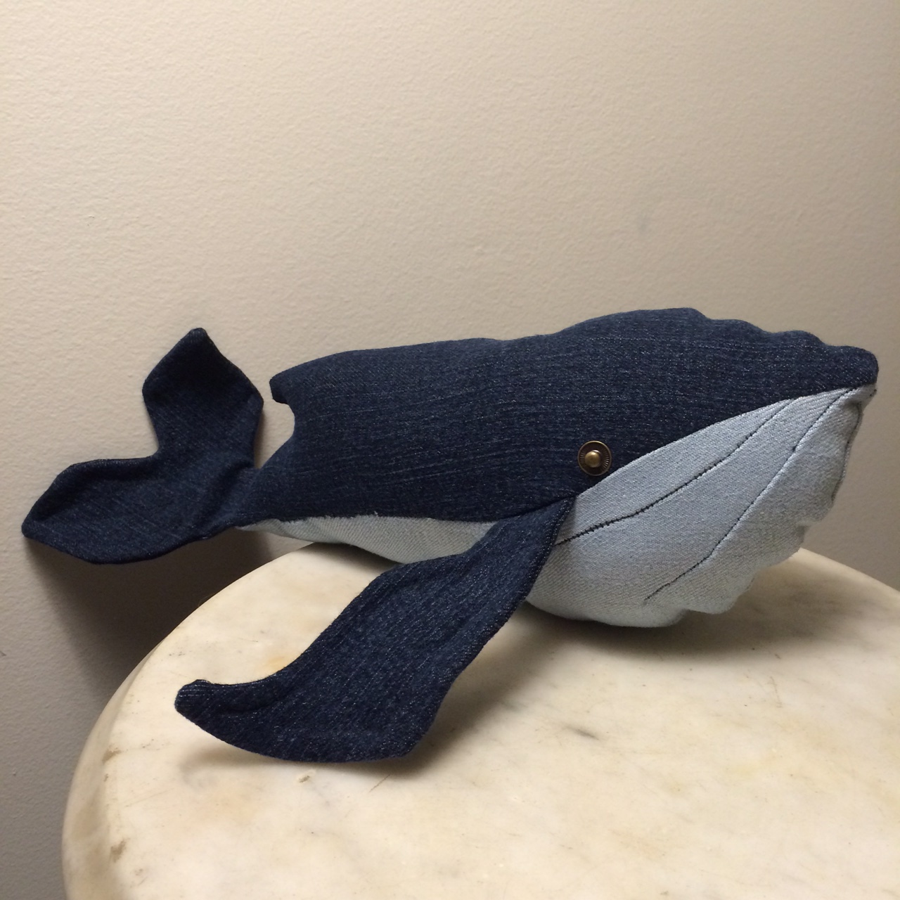 This past weekend I wanted to try out a project I found on Pinterest. I had two old pairs of worn out jeans that weren’t worth donating, so I searched. “repurpose jeans.” One of the first few search results was this super cute whale stuffed animal. I had to try it. The tutorial I followed was by a Finnish blogger, but she does have an English version of the tutorial which can be found here.