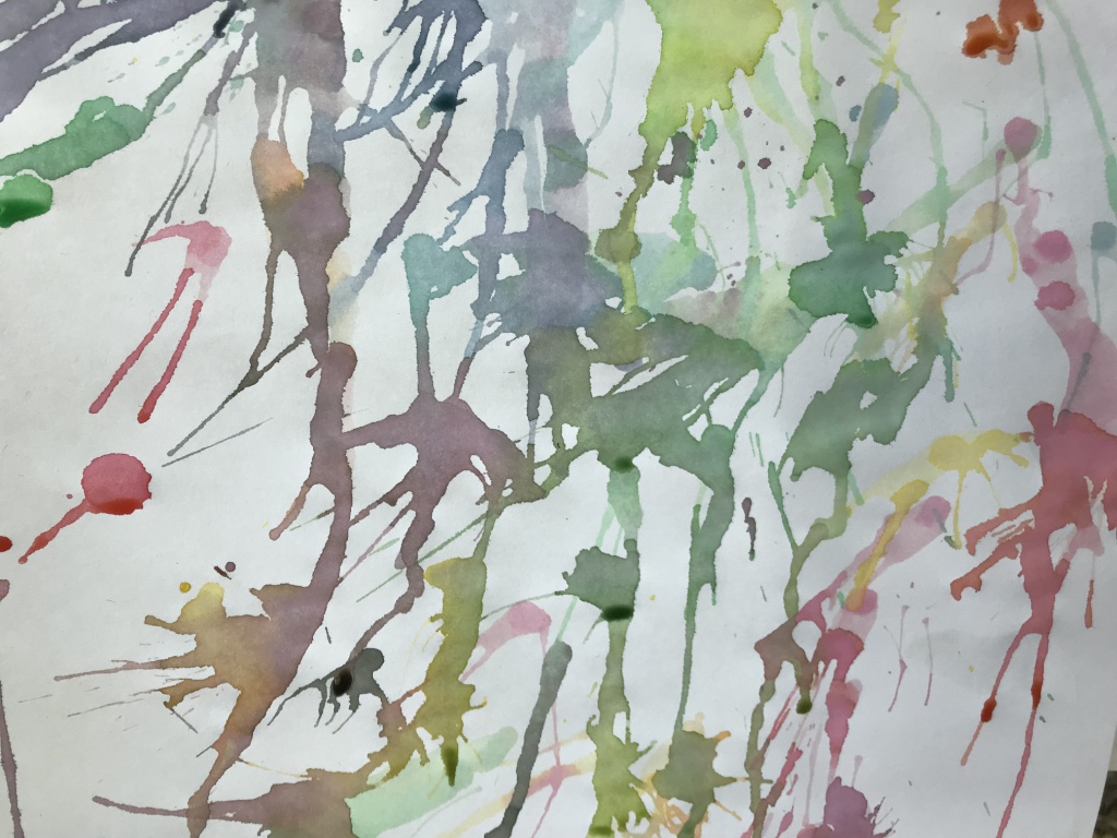 For these paintings we used straws to blow homemade watercolor paint (a mixture of water and food coloring) around on paper.